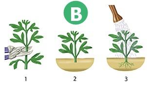d) en muchas plantas, en la raíz del individuo progenitor se forman brotes, de los cuales surgen nuevas plantas